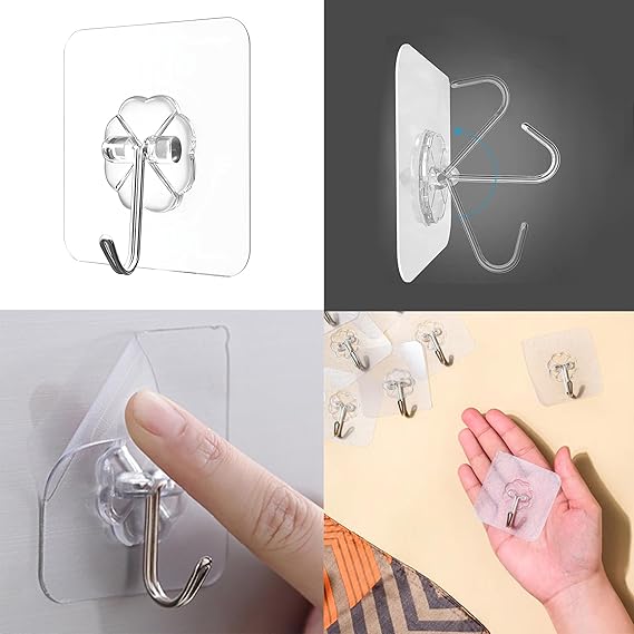 10 Pcs Self Adhesive Wall Hooks, Heavy Duty Sticky Hooks For Hanging, Waterproof Transparent Adhesive Hooks For Wall